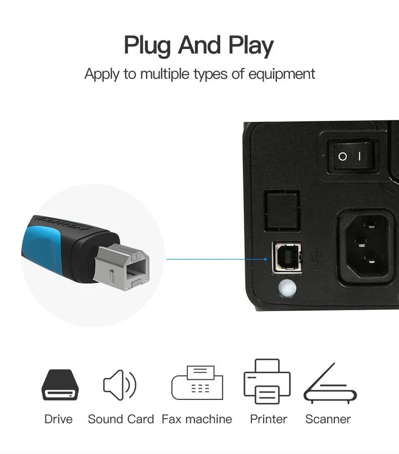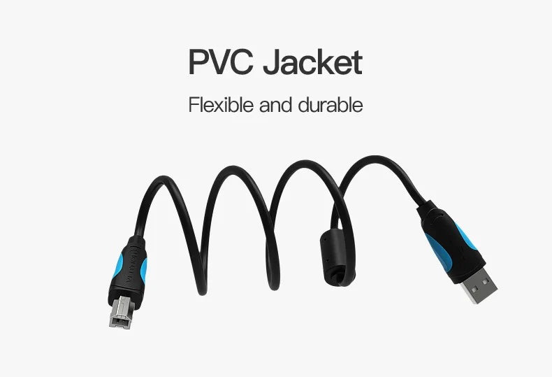 VENTION VAS-A16-B300 | BLACK 3M | USB 2.0 A MALE TO B MALE | TINNED COPPER | 480MBPS | ALUMNIUM FOIL + METAL BRAID | EMI/RFI RESISTANT | 6 MONTHS WARRANTY CABLE
