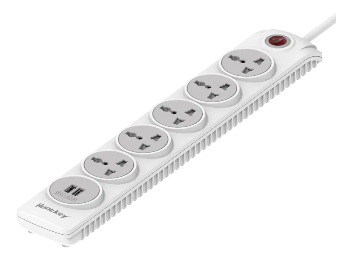 HUNTKEY SZN607 | MAX 2500W-10A 250V~ 50/60Hz | 5 UNIVERSAL AC OUTLETS+2USB-A |  EXTENSION CORD