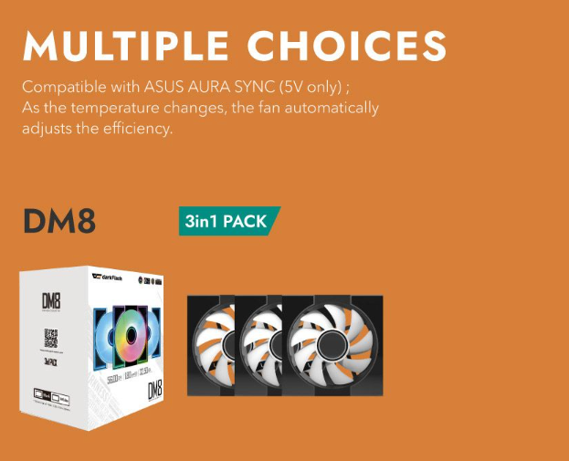 DARKFLASH DM8 SE | 3 IN 1 BLACK | 120 X 120 X 28MM | 4 PIN PWM | 5V3 PIN A-RGB | HYDRO BEARING | FASCINATING ARGB EFFECTS | SILENT AND THERMAL SOLUTION | 9 BLADE FAN |  6 MONTHS WARRANTY FANS