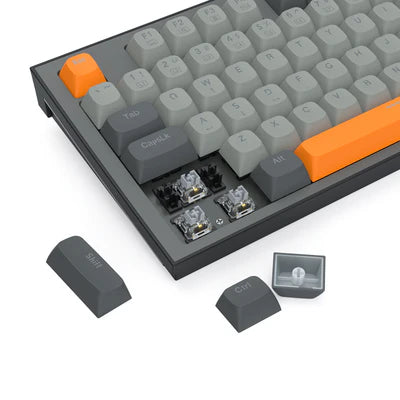 Dominate every game with a mechanical keyboard designed for speed and accuracy. Linear switches offer smooth, responsive keystrokes for lightning-fast reactions. The durable build ensures the keyboard can withstand intense gaming sessions. An ergonomic layout keeps your hands comfortable during long hours of play. Bold grey and orange styling adds a striking visual element to your setup. Together, these features create a keyboard built for serious gamers who demand performance and style.